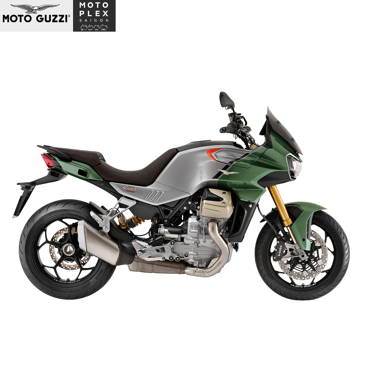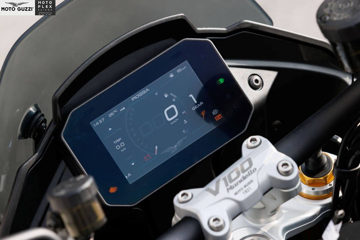 – Tính năng vận hành: Màn hình TFT màu, hệ thống đèn Full LED với đèn DRL, đèn hỗ trợ vào cua, 3 chế độ lái, hệ thống TPMS, khí động học chủ động, hệ thống chống bó cứng phanh ABS 2 kênh, tay lái và yên sưởi, kính chắn gió chỉnh điện, hệ thống kết nối Moto Guzzi Mia.